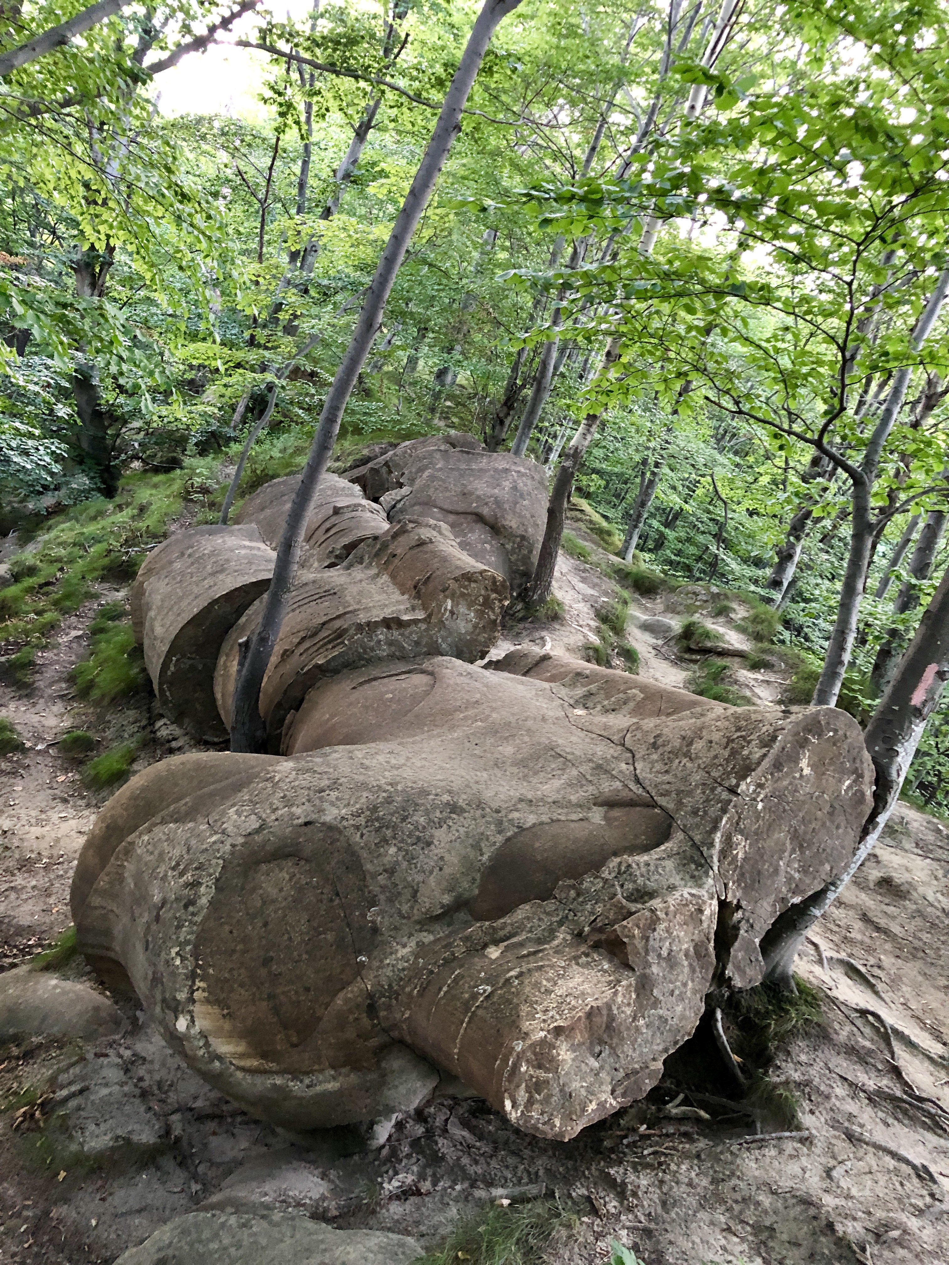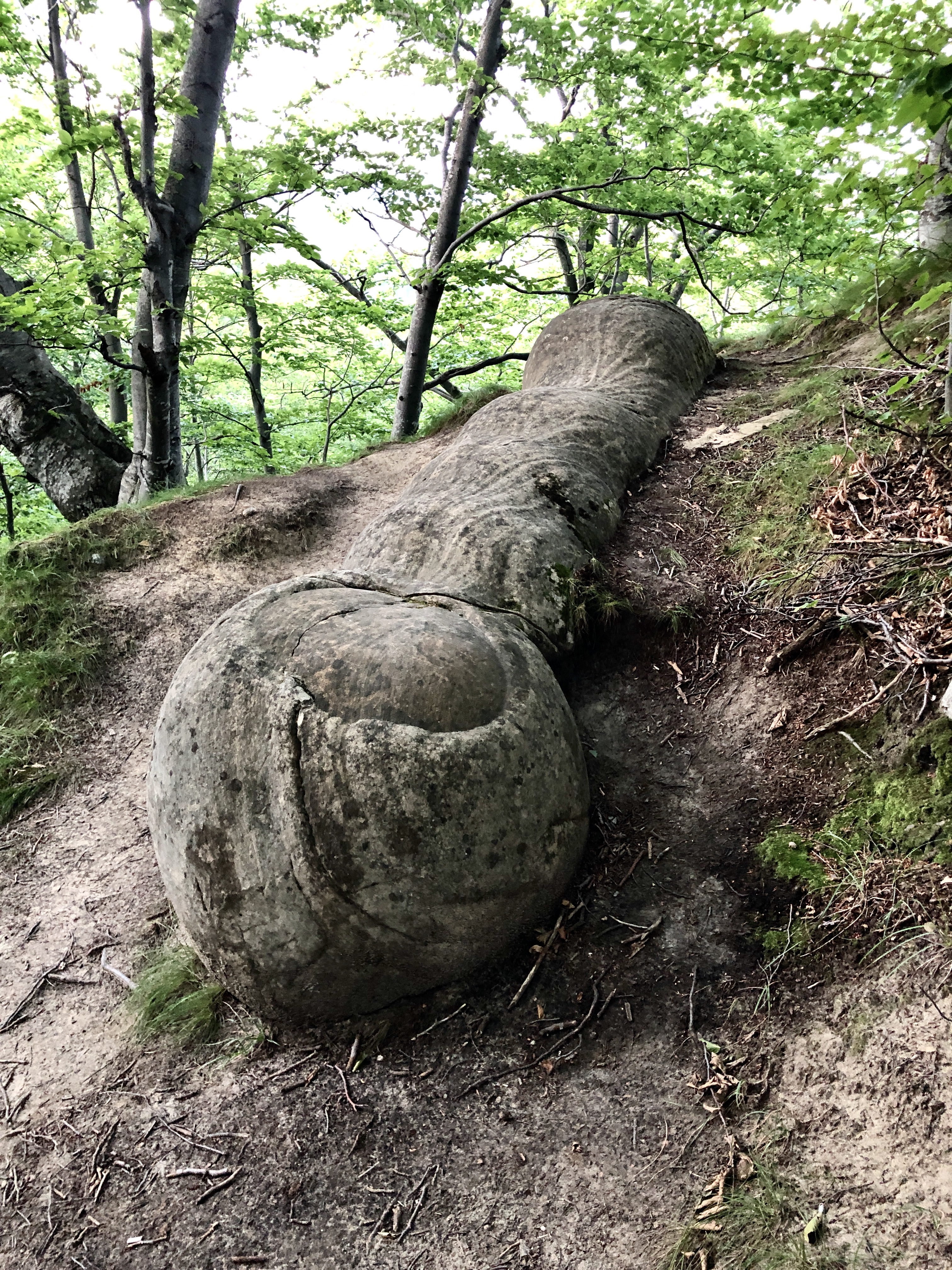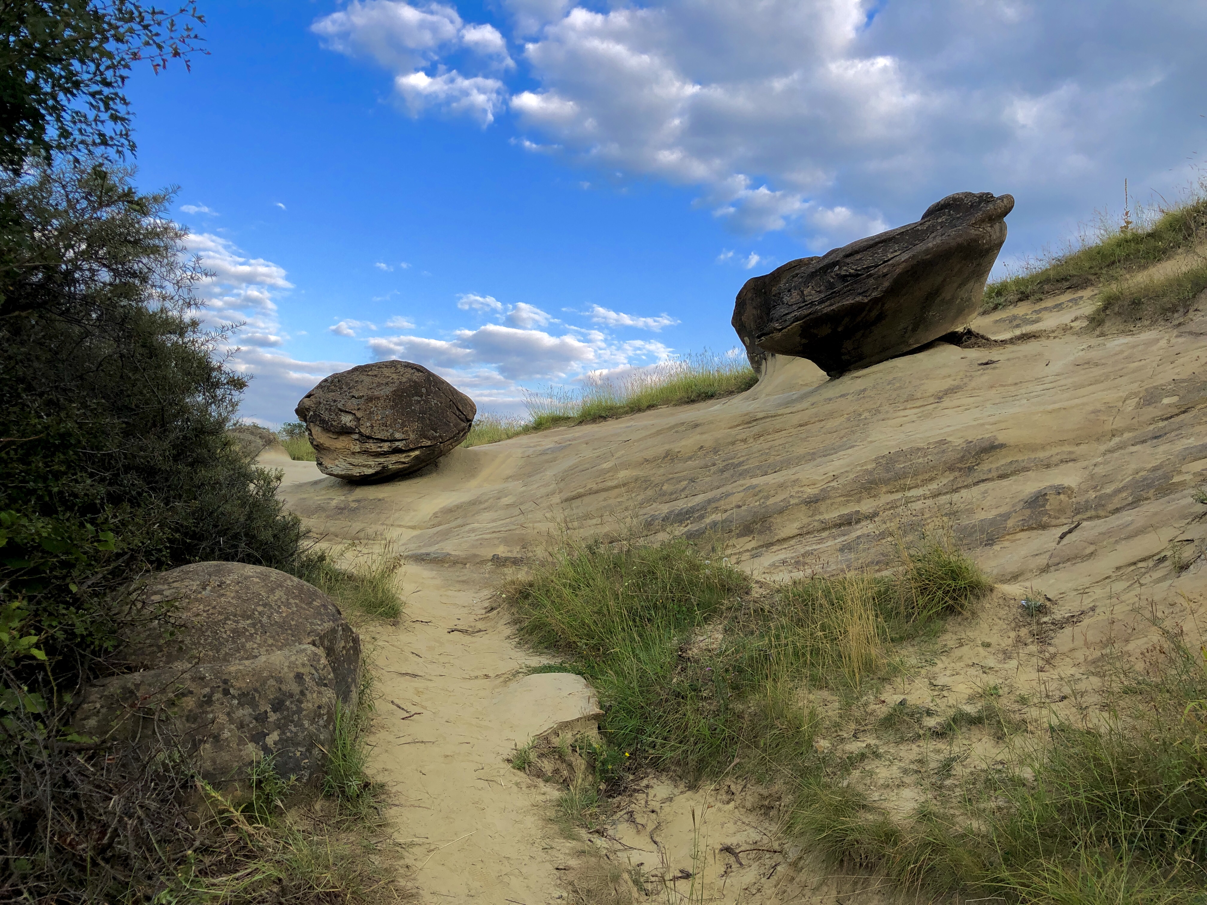 So here we are, on top of the cliff, where the august sun was smiling again, the sand was so fine that any gust of wind swept it away. Clusters of perfectly round rocks, built in slices or onion leaves covered partially in sand. I felt like Olaf, I was running towards them and hugged them, they were cold as ice, but irradiated some sort of warm and cozy energy. I stood in front of one of them for a couple of minutes waiting for it to respond somehow, it felt like I was in The Valley of living Rocks (from Disney’s movie, Frozen). We moved on, on a sandy path between “the trolls” (Frozen), and arrived in a meadow were some weird structures appeared, some of them looked like columns, others like giants. It felt like those were pre-human attempts or Luana’s unborn clay golems that fossilized. My wife had another opinion, she thought that might’ve been a very old underwater civilization, like Atlantida, due to the fine motifs. I felt in love with that place, we stood there and watched the sunset, with our new friends.
